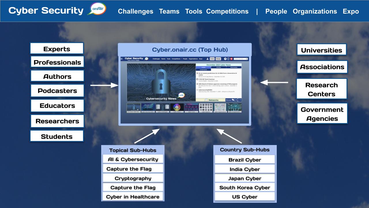 The Cyber onAir Network is a human-curated, AI-assisted network of cybersecurity-related hubs that aim to create flourishing online communities based around learning, discussing and engaging with the most pressing cybersecurity issues of our time.