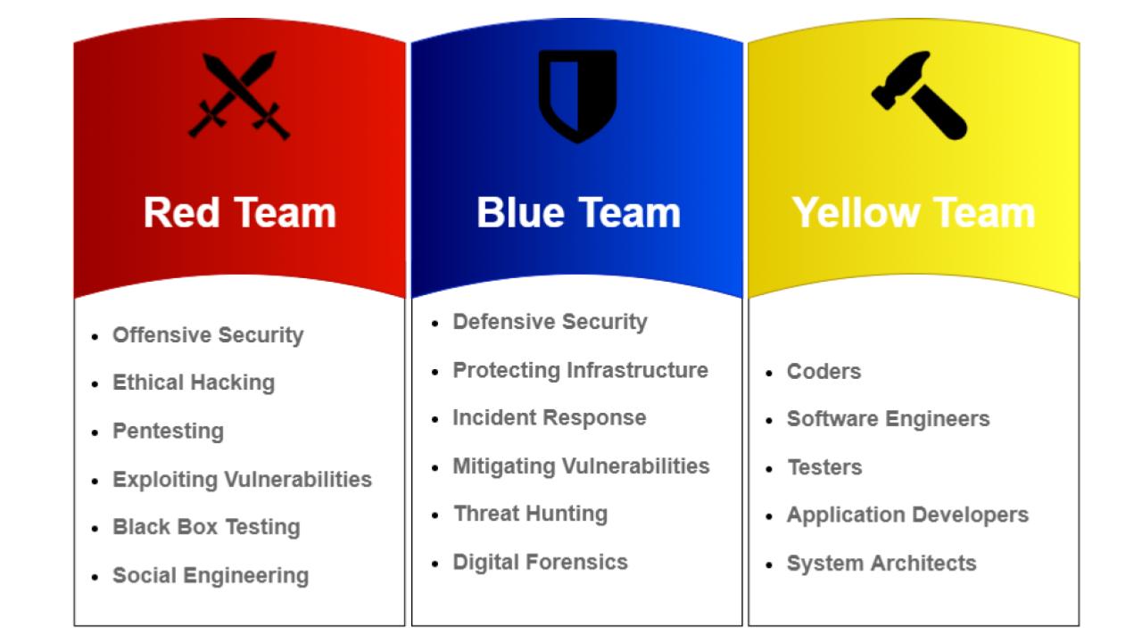- Collaboration: Working closely with the Blue Team to ensure systems are manageable and defendable (forming the Green Team function), and collaborating with the Red Team to learn about attack methods and embed a security-first mindset in development (forming the Orange Team function).